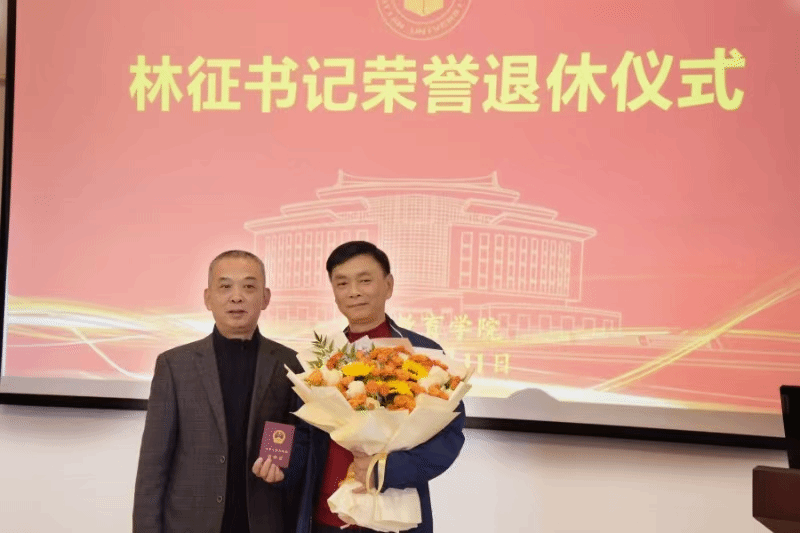 会议伊始,组织部人事处宣读了干部退休文件,校领导颁发退休证书并向林征书记赠送纪念品。学院工会代表赠送鲜花与纪念品,学院学工代表赠送纪念册。随后,全体与会人员共同观看学院教师精心制作的祝福视频,视频中饱含着对林征书记的支持与感激,现场气氛温馨融洽。