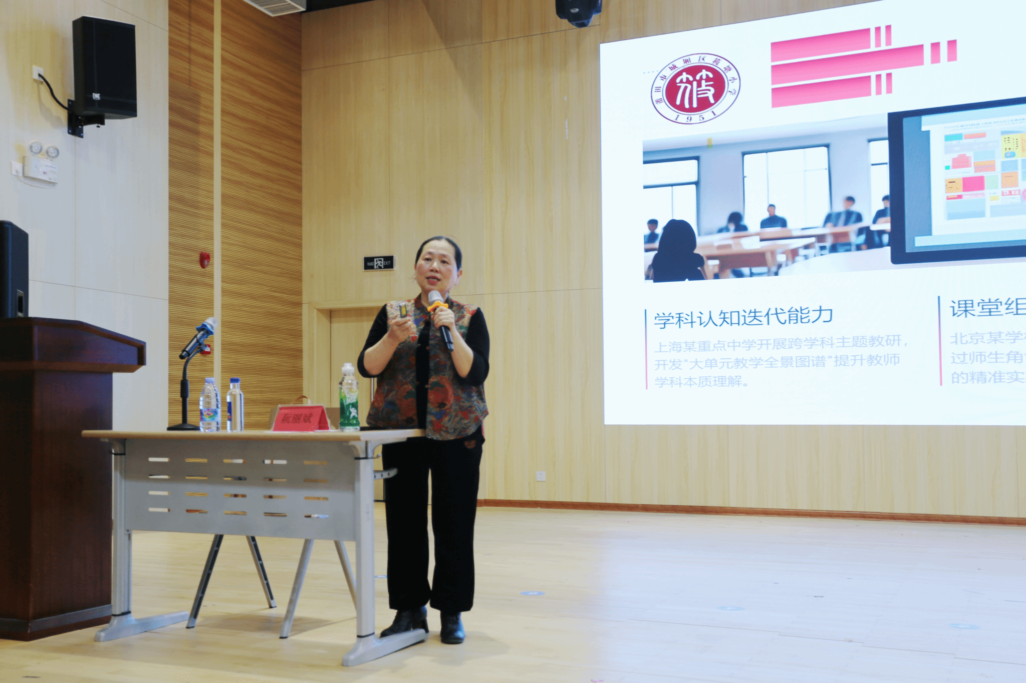 讲座最后,阮校长以古诗《望庐山瀑布》教学为例,阐述跨学科学习及项目式学习的模式。她提醒未来教师要认识到自身责任重大,不能仅局限于单一学科知识传授。基础教育改革倡导跨学科教学和项目式学习,教师应紧跟这一趋势。阮校长希望学生能从交流中受到启发,努力提升综合素质,认真学习,将所学内容内化为自身收获。
