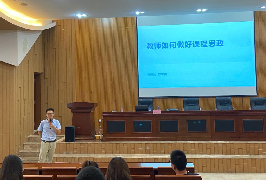 陈志勇副处长围绕什么是课程思政、为什么要做好课程思政、如何做好课程思政等三个方面展开讲解了如何做好课程思政。他提出,课程的开展需要和思想政治理论协同进行,做好课程思政最重要的就是要“立德树人”,把握社会和时代的脉络,因时制宜、因地制宜,将教学与实际相结合,实现课程思政的创新发展。