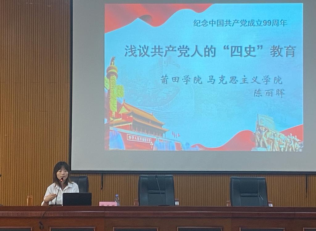 图为思政部陈丽晖讲师为新教师进行“四史”教育培训。范许俐 摄