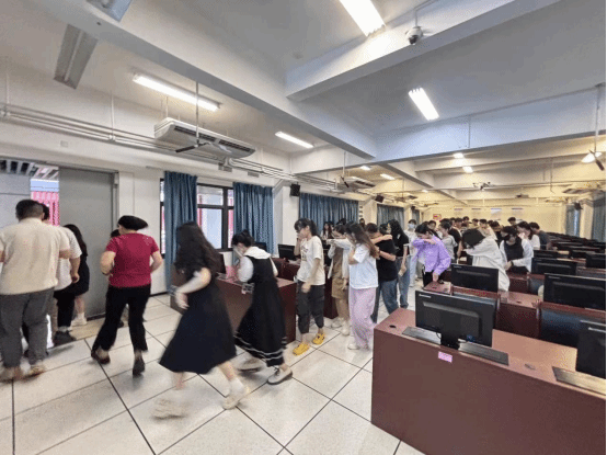 演练过程中,学生们在教师的有序指挥下,迅速而准确地按照预定逃生路线撤离,展现了良好的应急反应能力。整个演练过程紧张而有序,充分体现了学院对学生安全的高度重视。